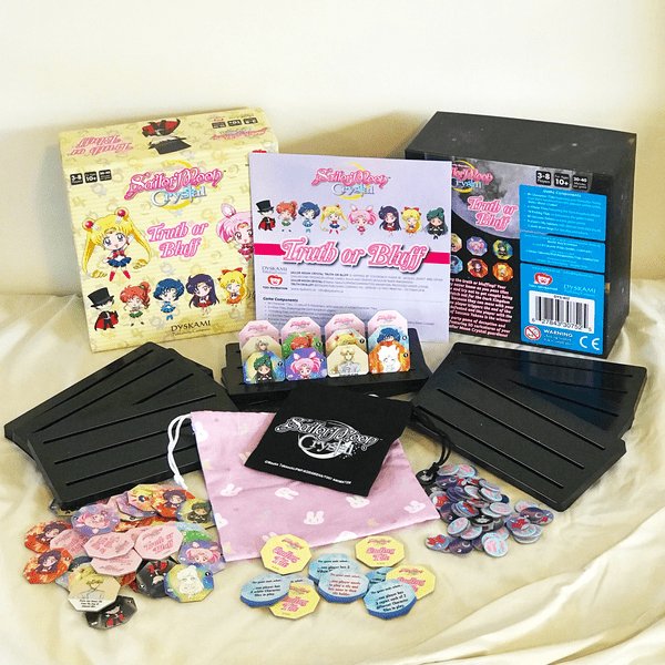 Created by Japanime Games, Sailor Moon Crystal: Truth or Bluff is a game of deception and misdirection. Are you being honest or lying? Keep the other players guessing as you pass tiles around the table and attempt not to get caught in your real intentions. As you duck and dodge your fellow players, watch out for members of The Dark Kingdom, as they can seriously mess up your plans.