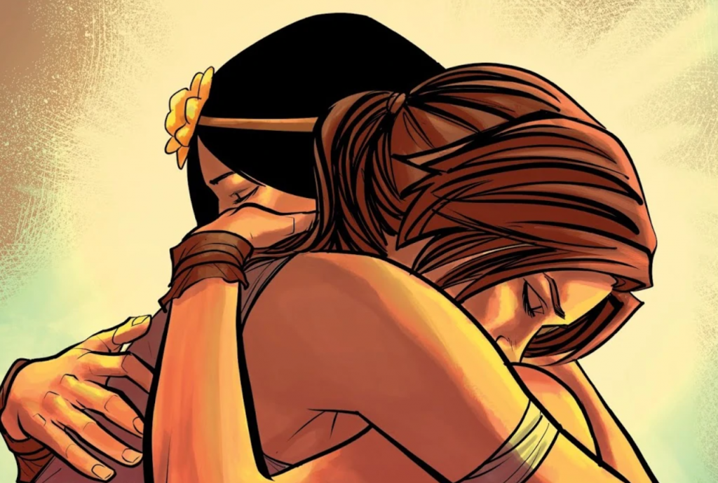 In a response to well-known comic writer Gail Simone, Lanzing said “Gail, we tried so hard to make [Lara and Sam] canon. We had an entire issue in TR: INFERNO dedicated to Lara going through a toxic drug trip and finally, fully understanding her feelings for Sam. By the time it went to publishing, their culminating kiss had become a friendly hug.”