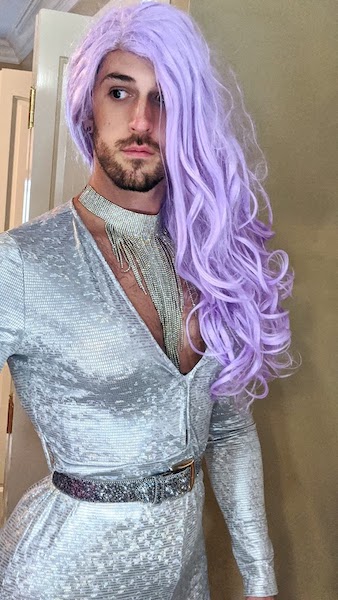 I’ve done drag under a few different names, but my current alter-ego is Pyxl Gorgeous, a game developer glitch witch with a love for all things lavender and an eye to the future of technology. Pyxl is a cosmic shapeshifter and loves playing with gender presentation and body shape to create wild illusions. She also loves hosting drag “coming out” parties for first-time queens.