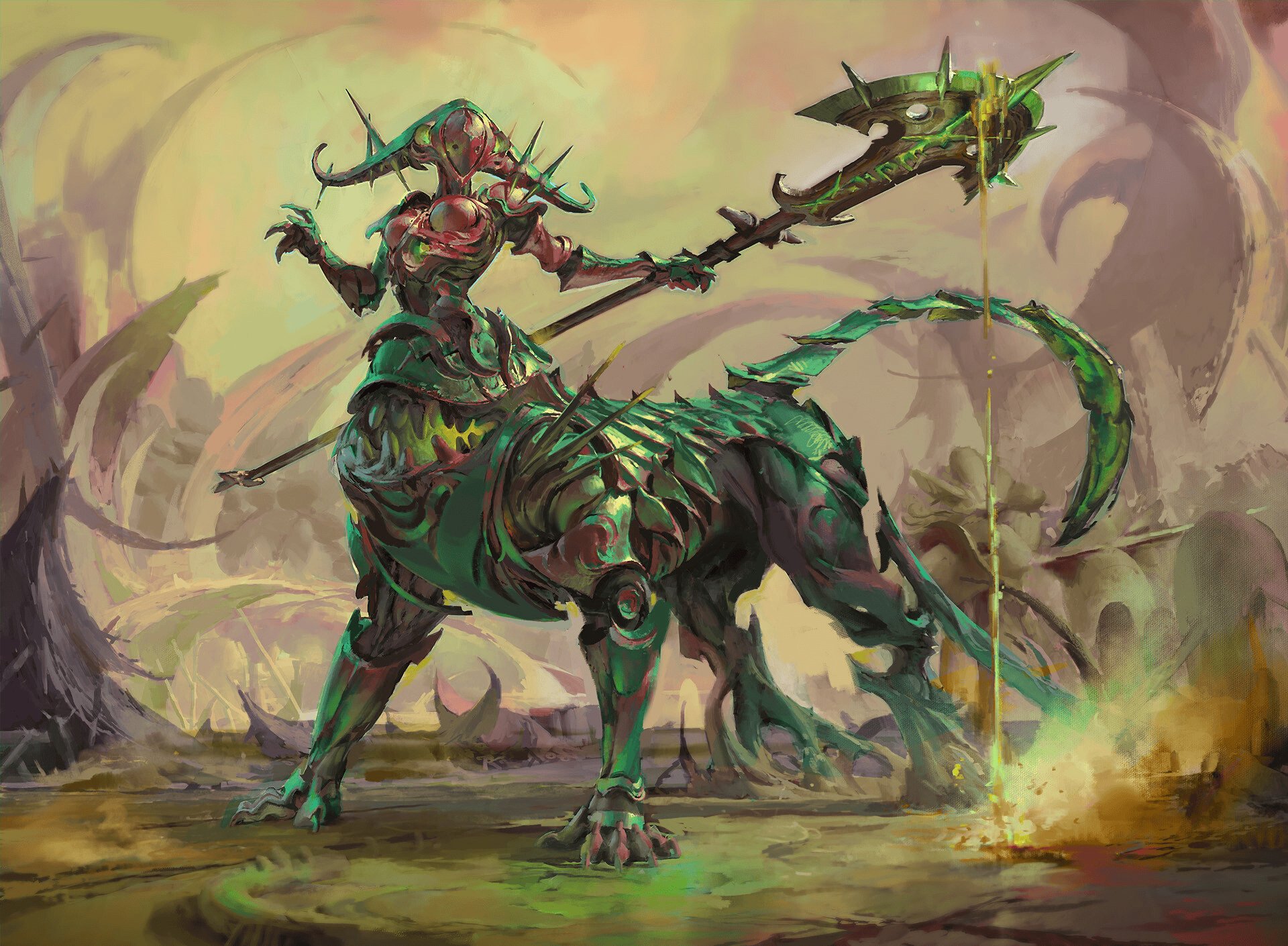 A horrifying creature called the Venomous Brutalizer, a faceless phyrexian knight clad in putrid armor, looking like some metallic centaur coughed up from the bowels of the underworld, bears down on me. Across from me sits the beast’s master; Gayming Awards 2022 host and famed presenter, Jules Hardy.