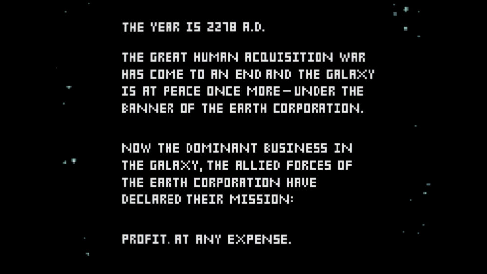 Gas Station Story opens like a Star Wars movie with scrolling text on top of a space background, setting the plot two centuries into the future, in the middle of tense relationships between races and galaxies. Right away, we are confronted with an intriguing contrast between the grandeur of the sociopolitical narrative and the seeming triviality of your existence as a mere gas station worker. But that is only the first of many contrasts that drive the game. The one I appreciate most is the advanced technology and futuristic themes, expressed through minimalistic retro visuals and sound effects reminiscent of old school systems.