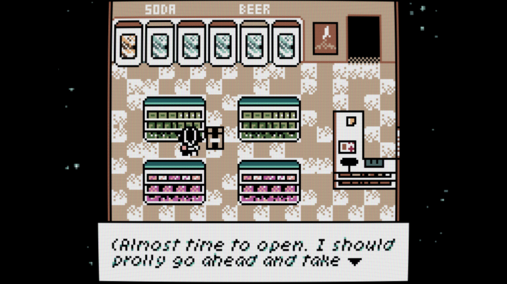 In fact, the very machine you use as a cash register is a spoof of the Game Boy. You’ll spend quite a bit of your time handling your clients’ purchases, but the true heart of the game is actually in the interactions with them. This part – your job and identity as a gas station clerk – I could have done without: you just add up your client’s gas and their purchases, do some math, and move around with your cursor from one button to the next, rinse and repeat a few times. While this component of the gameplay feels dry, it does an excellent job at conveying the protagonist’s psyche and immersing you into the narrative, I understand its importance in the grand scheme of the game.