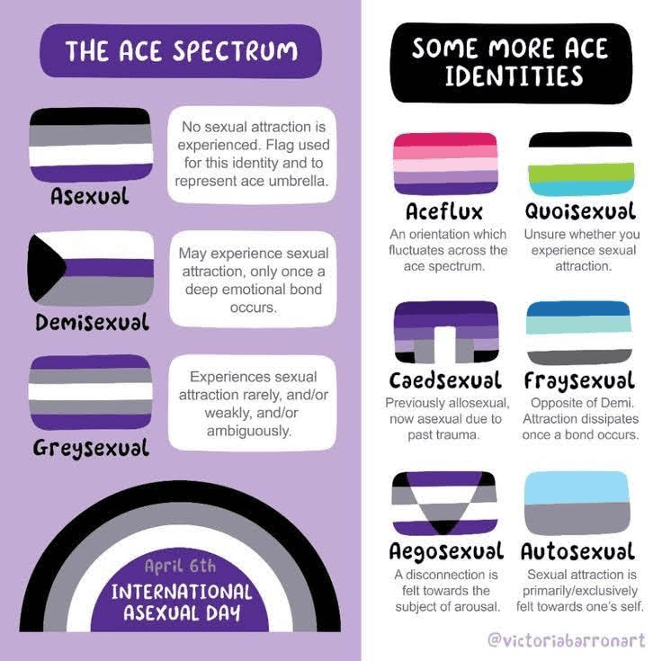 Exposure to asexual folks and positive representation in media can not only begin to normalize the asexual experience, but understand the spectrum more. I remember when I came out to my community and family as asexual and demiromantic, I was feeling so anxious I wanted to throw up. I had a friend stand by my side and read to protect me if anything bad happened, and to this day I am grateful to her. She is a queer woman herself and knew exactly what I was going through and also understood the nuance of intersectionality because I am a Black woman. I wish everyone had that understanding and acceptance but that is not always the case.