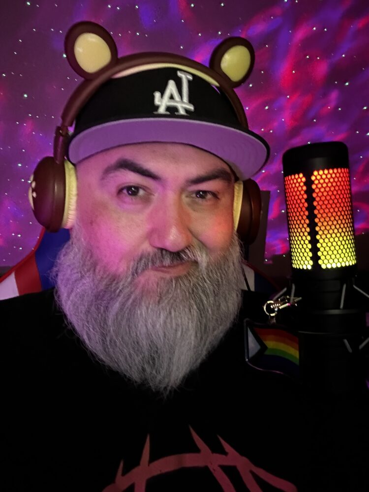 I am a nerdy geeky latine gaymer bear who enjoys playing horror and superhero games. I love community and bringing people together. I love to joke around, throw some shade, and read people to filth (with love of course) but also hold a space where people within the 2SLGBTQIA+ community can be their authentic selves when in my chat. I didn’t have space like that growing up so I want to make sure to provide that to others who need it.
