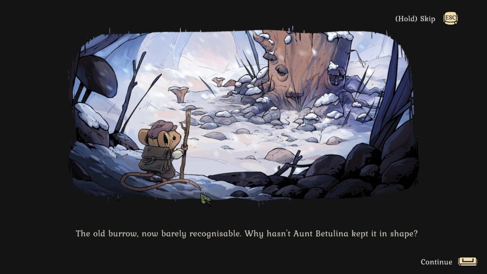 The art in Winter Burrow is stunning but where the game truly shines is the sound direction. The atmospheric sounds of the wilderness to the warmth of the crackling fireplace will immerse players into the environment adding to the depth of the narrative experience. The adorable mouse protagonist’s squeaks and pitter patters on the snow add a level of cuteness that will touch your heart.