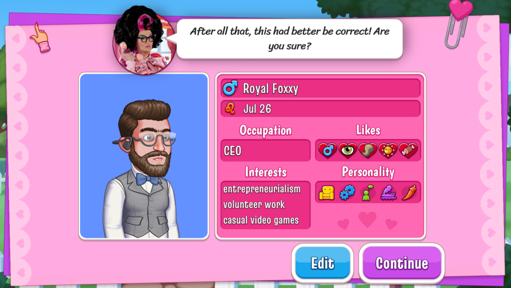 Players reprise their role as trainee matchmaker, attempting to turn around a neglected dating agency by guiding quirky clients to find their perfect match, all under the ‘expert’ supervision of British Drag Queen and matchmaking maven, Kitty Powers!
